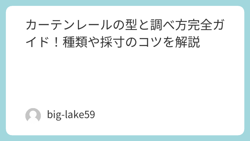 記事タイトル カーテンレールの型と調べ方完全ガイド!種類や採寸のコツを解説 記事構成案 初心者でも分かるカーテンレールの型と調べ方の基本機能性と装飾性の種類を正しく見分ける断面の形状でC型か角型かを判断する取り付け方が正面付けか天井付けか確... -