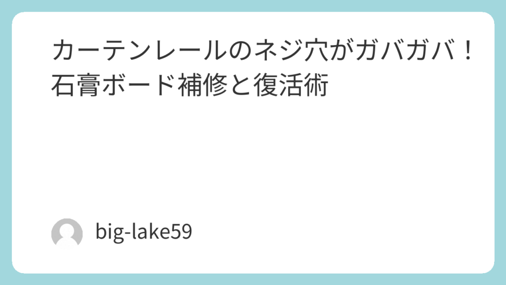 カーテンレールのネジ穴がガバガバ!石膏ボード補修と復活術 朝の忙しい時間に勢いよくカーテンを開けたら、「ガタッ」という嫌な音と共にレールが傾いてしまった…。あるいは、ふと見上げるとネジが浮いていて、レール全体が今にも落ちてきそう…。そんな経... -