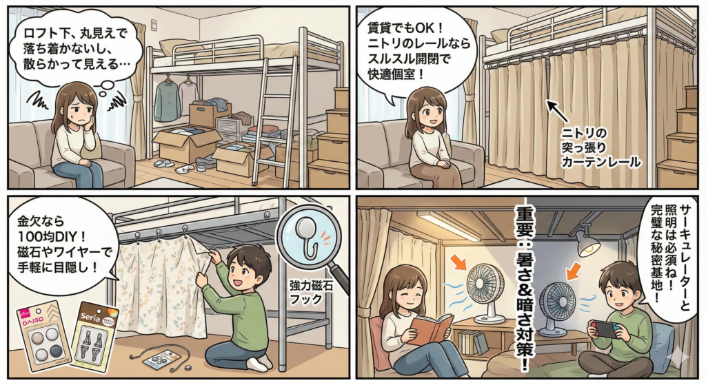 ロフトベッドのカーテン後付け全手法!快適個室へ変身!