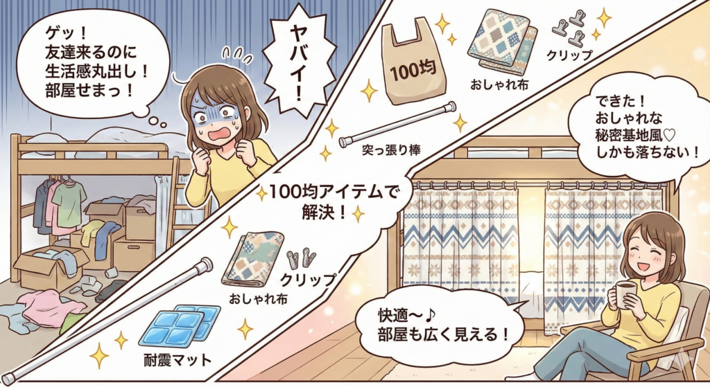 ロフトベッドのカーテン後付け術!100均で叶うおしゃれ空間
