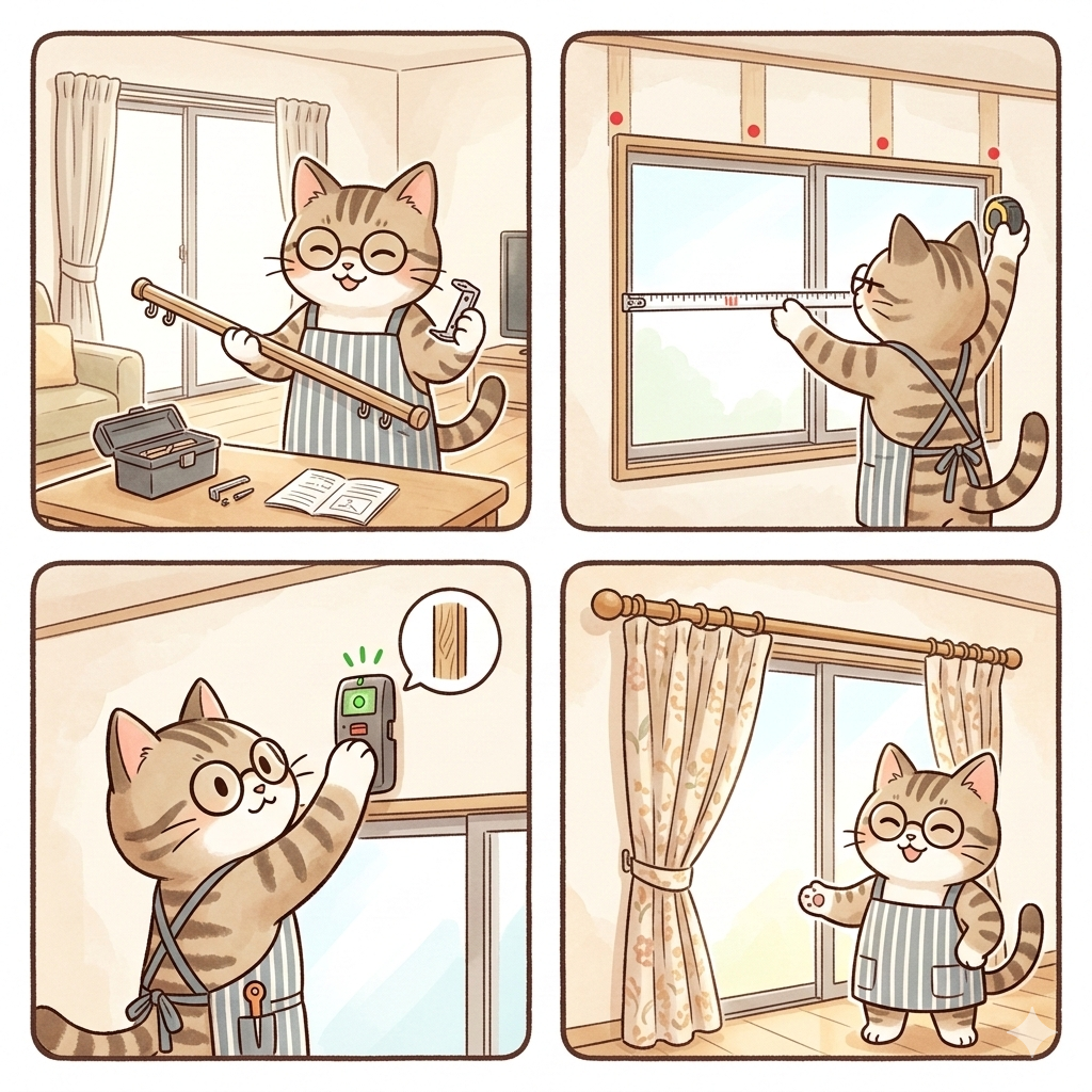 基本となる「90cm間隔」をしっかり守り、壁の裏にある「下地」を正確に射抜く。そして、窓際の冷気を遮るために「高めの位置」に設定する。この3つのポイントを意識するだけで、カーテンの使い心地も、お部屋の快適さも劇的に向上します。DIYで苦労して取り付けたレールに、お気に入りのカーテンを初めて掛けたときのあの感動は、何物にも代えがたいものですよ。もし、この記事で解決できない特殊なケースや、設置場所の強度がどうしても心配な場合は、公式サイトで製品の詳細な仕様を確認したり、最終的な判断は専門家にご相談ください。皆さんの窓辺が、安定感のある素晴らしい場所になることを心から応援しています。最後まで読んでいただき、ありがとうございました!