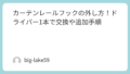 | 拡張パーツ | 1本のポールに専用の「ダブル用ブラケット」等を噛ませて2本のレールを吊るす。 | 1本の突っ張りで済むため、設置箇所が少なくても可能。 | 全体の重量が増すため、耐荷重オーバーになりやすく落下リスクが高い。 |
