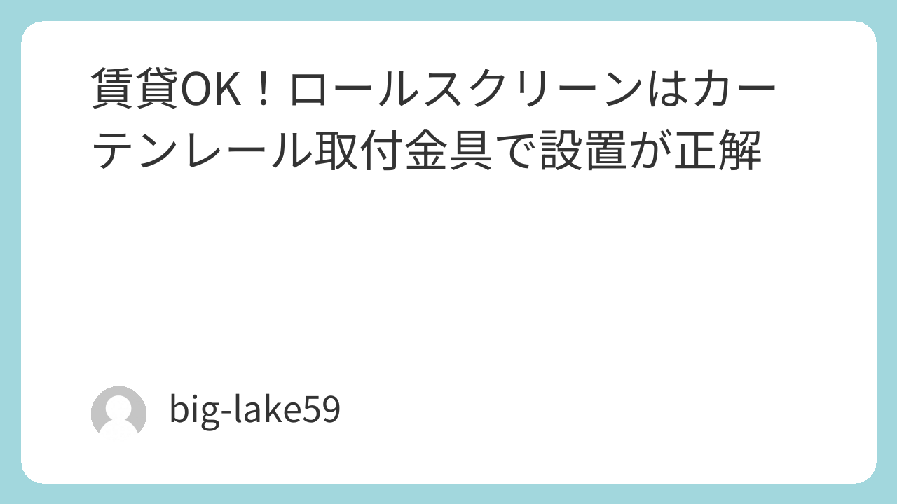 賃貸OK!ロールスクリーンはカーテンレール取付金具で設置が正解